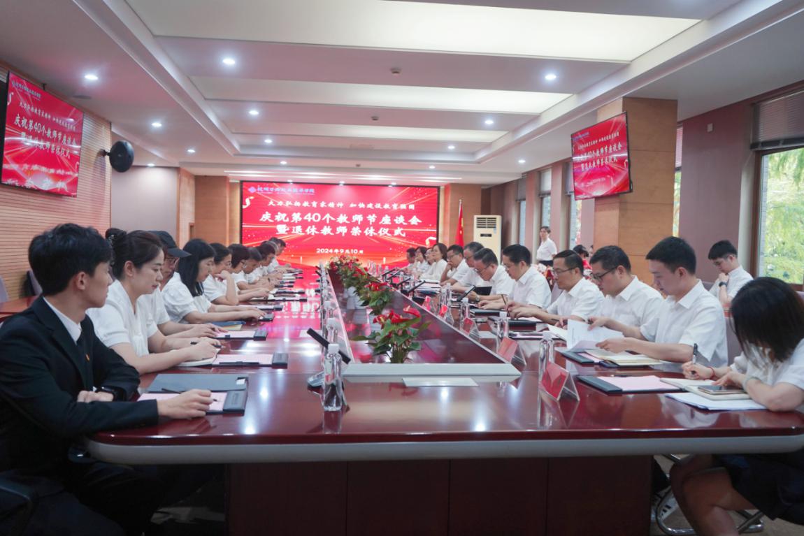9月10日,学院在二号校区6216会议室召开以“大力弘扬教育家精神,加快建设教育强国”为主题的庆祝第40个教师节座谈会暨退休教师荣休仪式。学院党政领导、近一年退休教师、先进教职工及学生代表参会。会议由党委副书记、副院长朱仁学主持。
