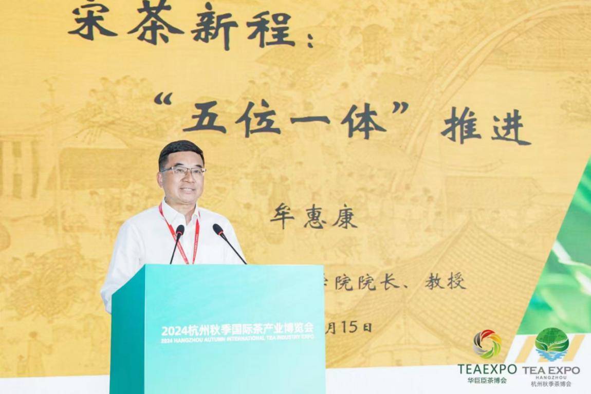 “茶文化是中国文化的瑰宝,中国文化造极于宋,宋茶文化又是宋韵文化多领域的集中体现。”11月15日举行的以“品宋韵茶香·启文化新程”为主题宋代茶文化论坛上,牟惠康院长受邀作《宋茶新程:“五位一体”推进》主旨报告。他从科学、技术、文化、人才、教育五个方面,讲述了中国茶、宋韵茶、和合茶的悠久历史,并以学院茶领域发展探索为例,解读了未来茶业融合创新的核心、动力、支撑与方向。
