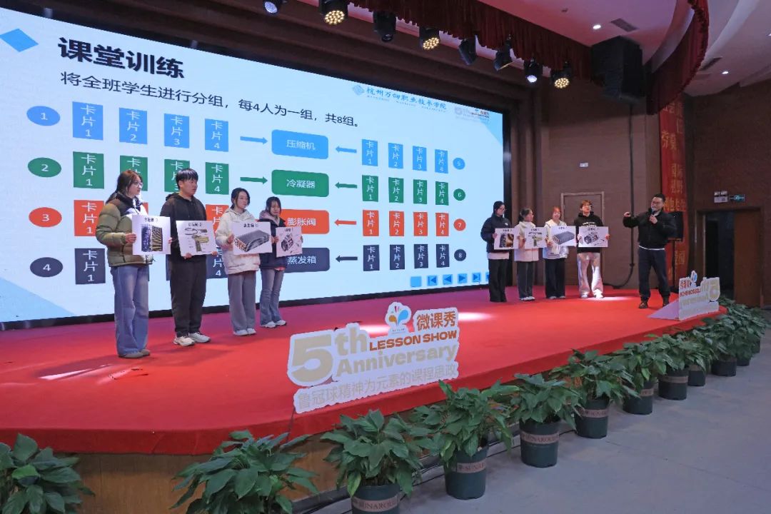 八堂精品微课,八大以鲁冠球精神为主题的思政元素,牵引着台下观众从工匠精神、劳模精神、国际视野,到利他共生、创业精神、创新精神的课程探索,在充分挖掘思政元素内涵、巧妙选取课程内容切入点的同时,老师们更是金点子频出,用“创编”思维将课程内容与思政元素精彩融汇,将课讲得新颖而吸睛。