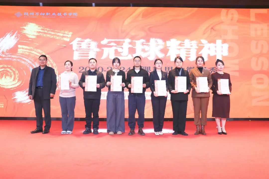微课秀最后,学院院长牟惠康为八位老师颁发了纪念证书。值得一提的是,这八位老师都是历届以鲁冠球精神充实课程思政系列活动中的获奖者。2020年以来,学院就着力将鲁冠球精神充实思政元素,建设具有学院特色的课程思政。五年来,组织全院专任教师参与课程思政900余人次,开展课程达300多门,培育骨干教师40余名、总结提升优秀案例达30余项,公开发表相关论文16篇,建成课程思政教学实践基地。