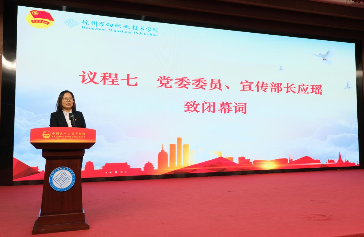 学院党委委员、宣传部部长应瑶对大会作总结,向当选的委员会委员表示热烈祝贺,向为会议的胜利召开做出辛勤努力的工作人员表示亲切慰问。她代表学院党委向全院各级团组织和广大团员青年提三点希望:一是希望学院共青团坚持政治引领,筑牢理想信念根基。二是希望广大团干部勇于担当作为,做青年学生的知心人。三是希望广大团员青年练就过硬本领,成就出彩人生。
