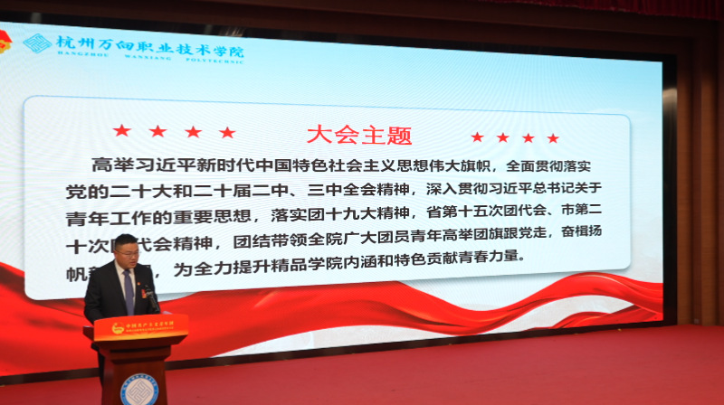 学院院长牟惠康对过去五年共青团工作取得的成绩给予了充分肯定,指出,本次大会时逢新中国成立75周年、五四运动105周年,是学院全体团员青年政治生活中的一件大事,学院共青团要始终坚持以习近平新时代中国特色社会主义思想为指导,团结带领广大团员青年深刻领悟“两个确立”的决定性意义,坚决做到“两个维护”,在实现中华民族伟大复兴的赛道上勇毅前行,并向全院团员青年提出三点希望:一要做学习新思想的表率。要自觉用习近平新时代中国特色社会主义思想凝心铸魂,牢记恪守万向创始人鲁冠球的教诲,听党话、跟党走。二要做掌握过硬本领的表率。要加强自身的专业学习,自觉提升技术技能,铸就自己的硬核本领,在实践中受教育、长才干、作贡献。三要做矢志做“全人”的表率。要坚持全人教育理念,敏而好学,将提升综合素质作为青年的奋斗目标,不断提升自己的国际视野和创新能力。