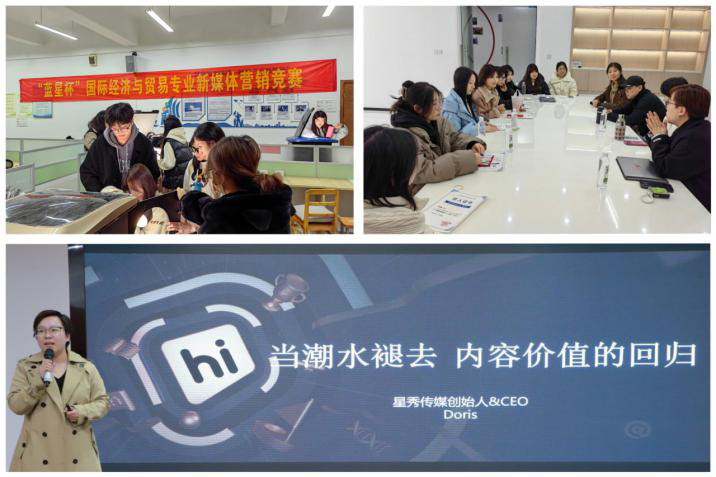 国际经济与贸易专业联合萧山区十大优势成长企业,杭州星秀广告科技有限公司、杭州康官人生物科技有限公司,成功举办“蓝星杯”新媒体营销竞赛。