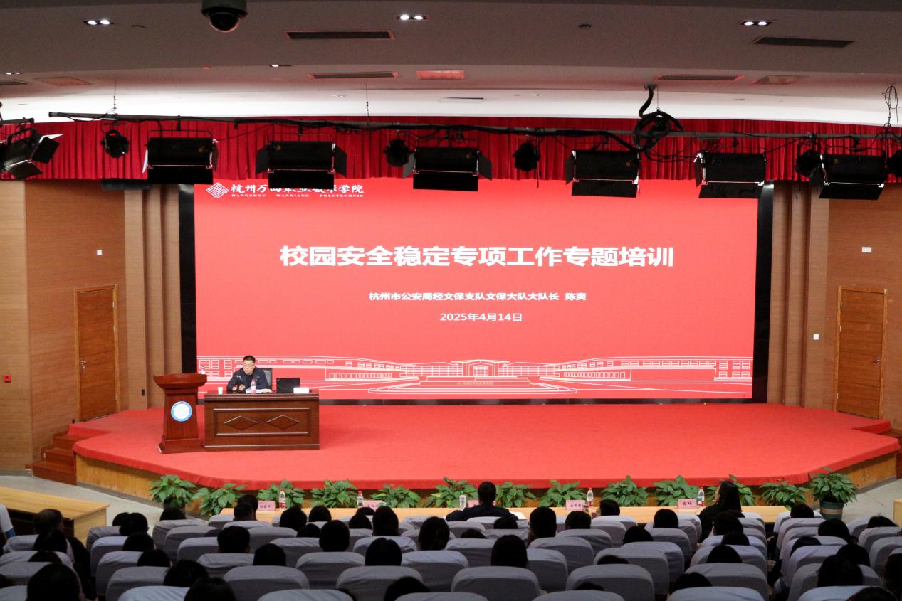 培训特邀请杭州市公安局经文保支队文保大队大队长陈爽作专题辅导报告。陈爽大队长从政策法规、日常实操工作能力等方面作了系统解读。报告主题鲜明、语言生动、案例详实、指导性极强,对于学院做好校园安全稳定工作,具有重要指导意义。