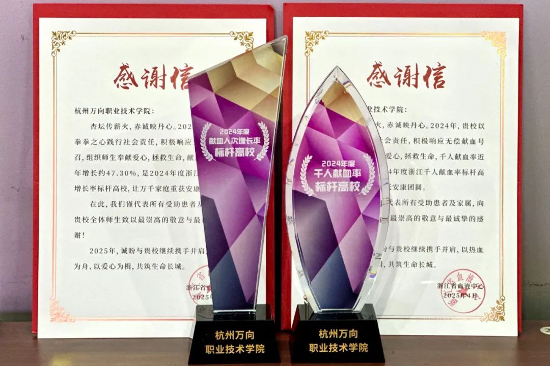 4月22日,2025年度浙江青年“热血先锋”无偿献血志愿服务主题活动启动仪式在杭举行。我院荣获“2024年度浙江千人献血率标杆高校”“2024年度浙江献血人次增长率标杆高校”荣誉称号。护理231班王予彤同学获评2025年在杭高校无偿献血“热血之星”称号。