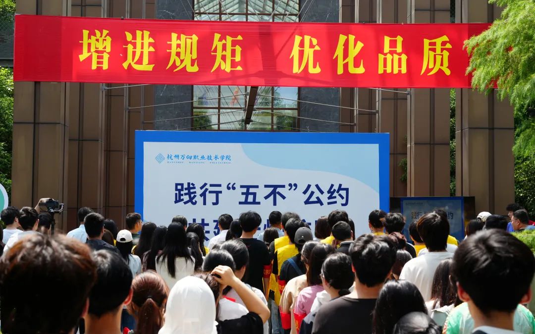 牟惠康院长为志愿者小分队授旗,朱仁学副院长为各包干区授牌,强调“责任到人、行动落地”。全体师生在志愿者代表领誓下庄严宣誓:“不吸烟、守文明、勤学习、遵纪律,做新时代万向青年!”