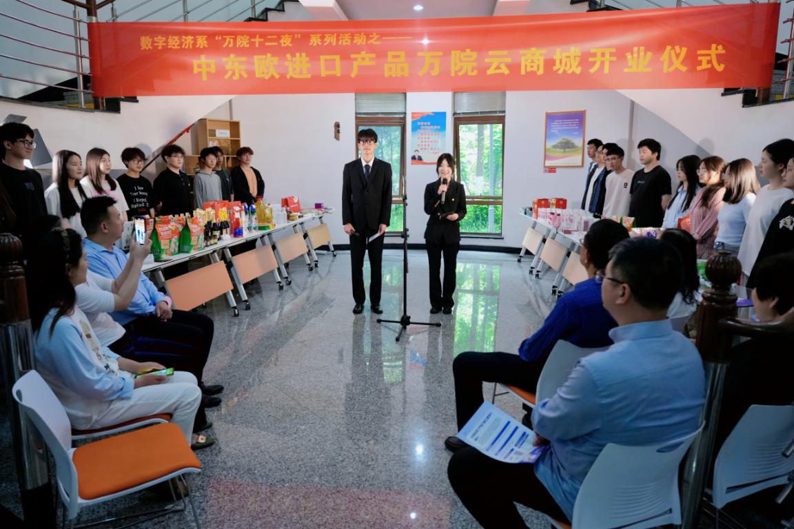近日,学院与鹰享力(浙江)文化传播有限公司在二号校区3号楼共同举办“万院十二夜”·中东欧进口产品万院云商城开业仪式。鹰享力(浙江)公司董事长应效平、CEO叶蓉娟,学院院长牟惠康、数字经济系主任刘富丽及相关部门负责人、师生代表参加仪式。