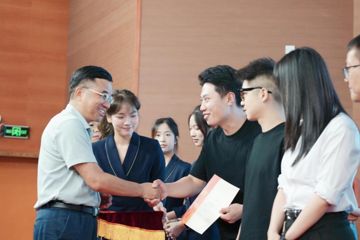 牟惠康院长代表学院为十位校友颁发“三创导师”聘书,宣传部部长应瑶为校友们赠书《领潮:鲁冠球传》。希望校友们承载母校的期许,在学院三创导师的岗位上,传承与弘扬鲁冠球精神,为万院学子们点亮前行的灯塔。