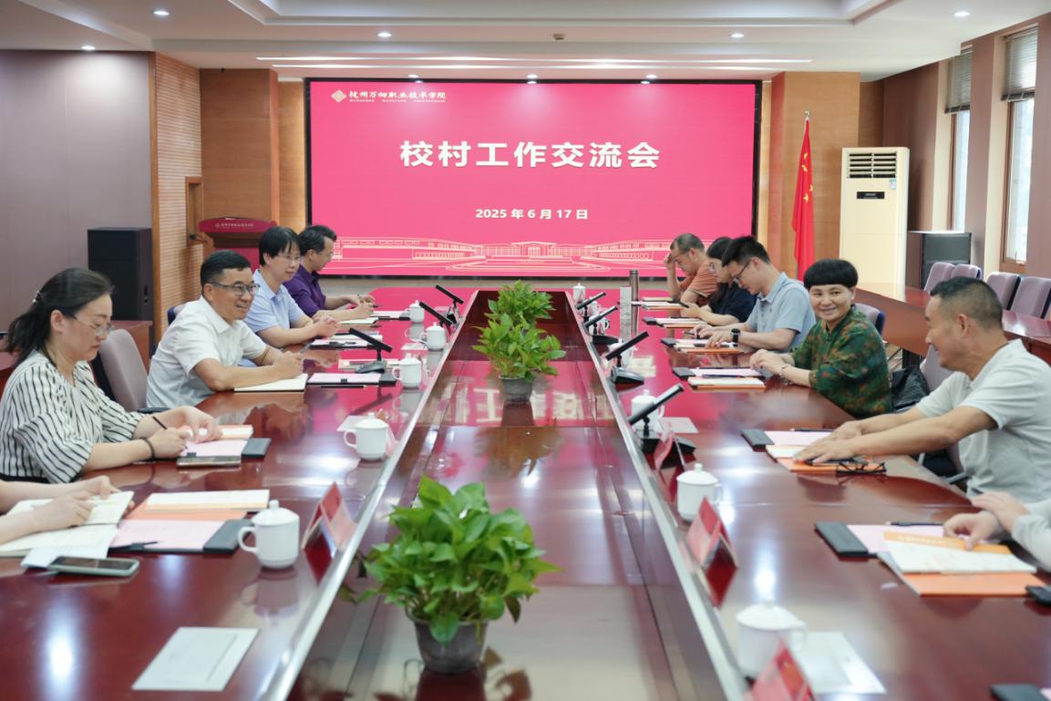 6月17日下午,学院就助力乡村振兴工作召开校村工作交流会。市中华职教社秘书长张灵仙,桐庐县桐君街道党工委委员高成,梅蓉村党委书记、村委会主任吴方云等出席,学院党委副书记、院长牟惠康及有关部门、系负责人参加。会议由牟惠康院长主持。高成委员与吴方云书记介绍梅蓉村情况。牟惠康院长介绍学院情况,并对双方进一步合作提出设想。任国平副主任介绍学院服务乡村振兴经验。张灵仙秘书长提出校村工作深化细化意见。双方就研学交流、技能培训、农产品开发等方面合作达成共识。