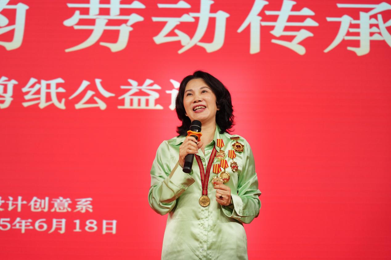 6月18日,学院在2号校区小报告厅举办“匠心剪韵,劳动传承”非遗剪纸公益课。国家级非遗传承人、全国五一劳动奖章获得者、全国三八红旗手高少萍老师受邀授课,近300余名师生以非遗文化为桥梁,开启一场传统与现代交融的匠心之旅。