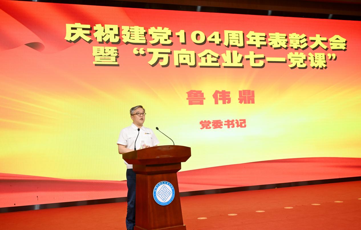 7月1日,集团党委举行庆祝建党104周年表彰大会暨“万向企业七一党课”,党员、干部齐聚一堂,表彰先进,学悟精神。党委书记、董事长鲁伟鼎作《争先争优争彩 提升自身能力》专题党课。党委副书记管大源主持大会。