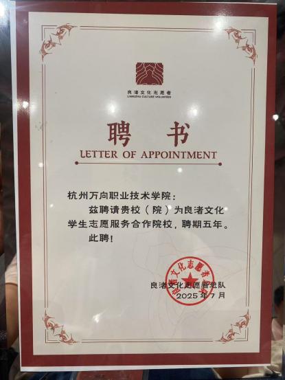 2022年,学院设计创意系(思政部)与良渚文化志愿者总队合作组建良渚遗址公园志愿队杭万院小组。三年来,学院持续为总队输送了一批又一批优秀的青年学生志愿者,指导教师李晓明曾获2023年度“最佳组织奖”,22级学生潘柏吟曾获2023年度“优秀学生志愿者”。截至目前已有三期志愿者,总计45人,累计服务总时长已超2000小时。杭万院小组以青春力量激活五千年文明的精神密码,架起历史与未来的对话桥梁,为良渚文化志愿者志愿服务增添了青春与活力。