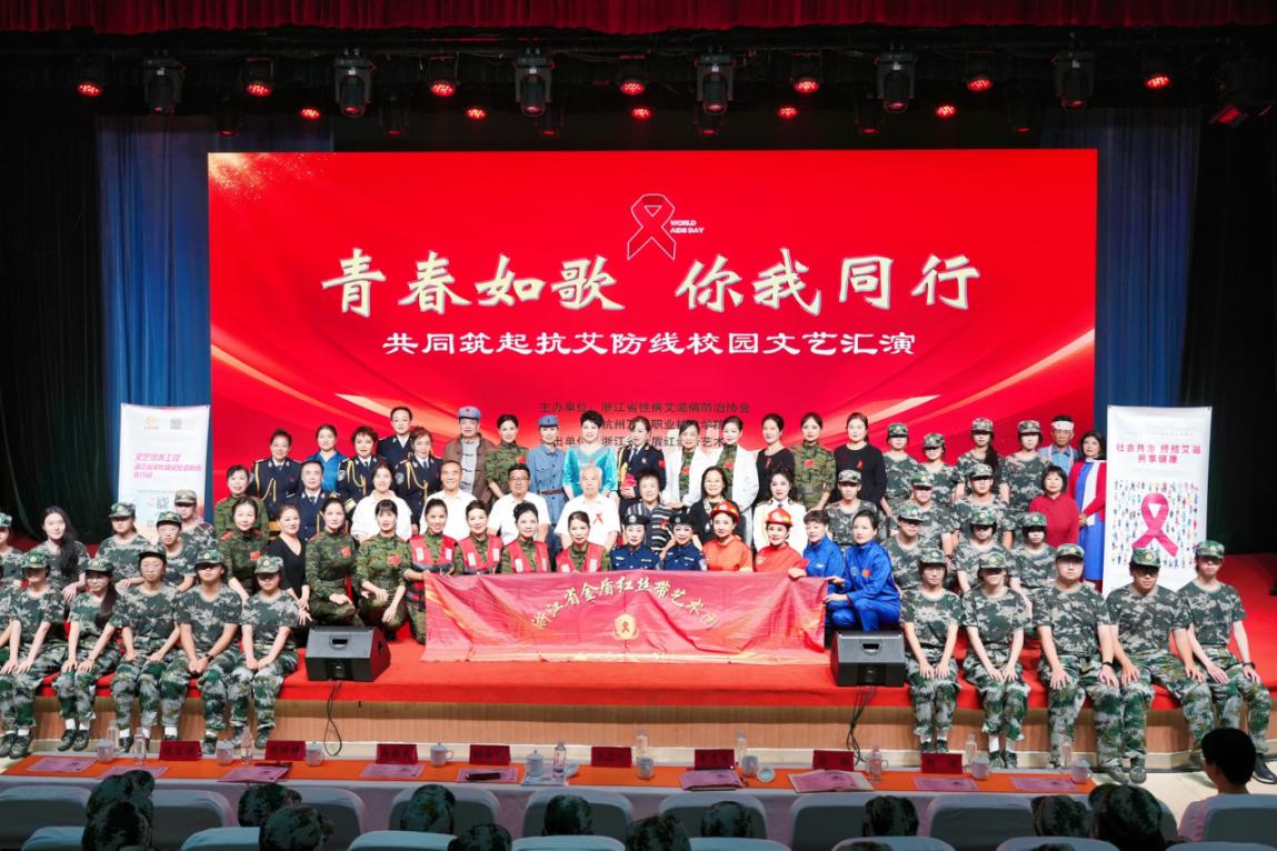 我省著名艾滋病防治专家、杭州西溪医院原感染科主任时代强教授带来科普微讲座,普及艾滋病防治知识。情景歌舞《飘动的红丝带》、戒毒防艾小品《希望》、反邪教小品《醒悟》、歌伴舞《祖国不会忘记》……一个个兼具艺术感染力与主题教育性的作品,让同学们在欣赏表演的同时,深化了对防艾、反诈、反邪教工作的认识。