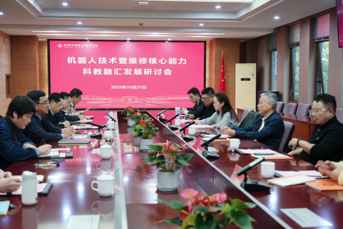 10月27日下午,学院在二号校区6216会议室召开机器人技术暨维修核心能力科教融汇发展研讨会。浙江省机器人产业发展协会常务副会长李碧清,原浙江大学继续教育学院干培中心主任吴忠定,学院党委副书记、院长牟惠康,党委委员、副院长朱仁学,以及相关系、专业负责人与行业专家参加。会议由牟惠康院长主持。
