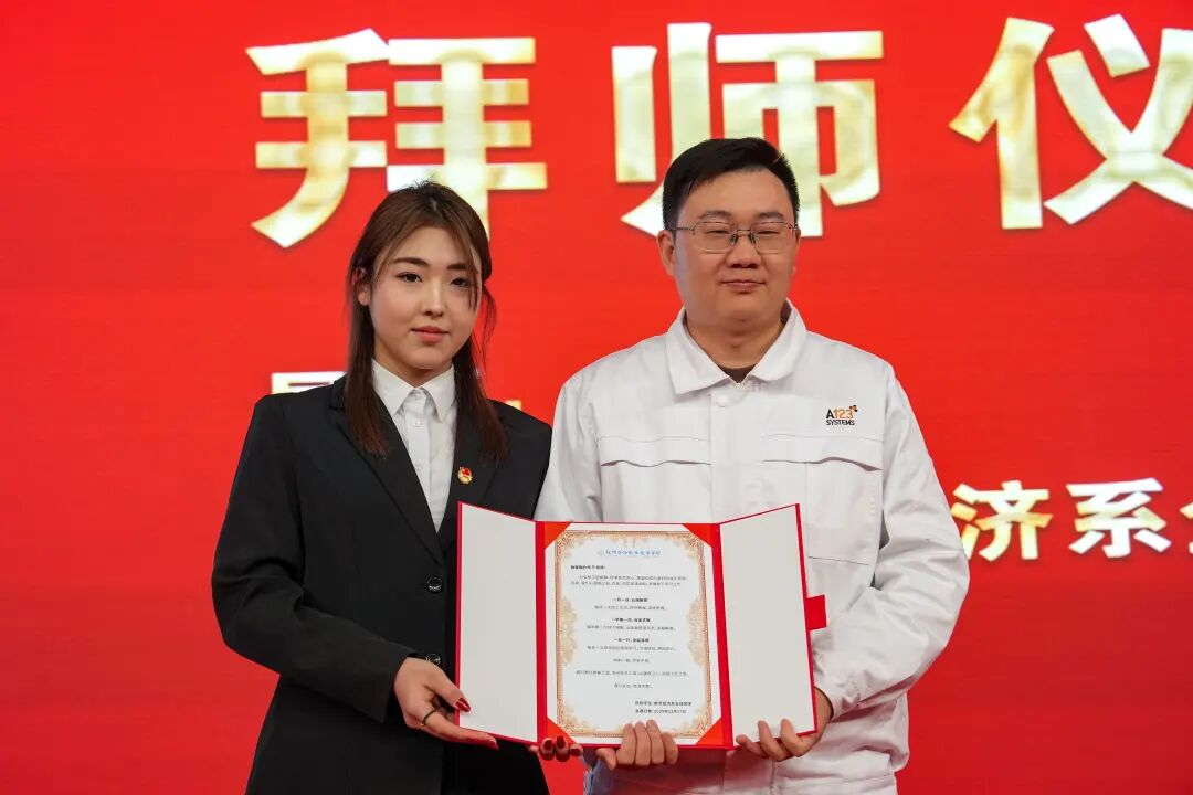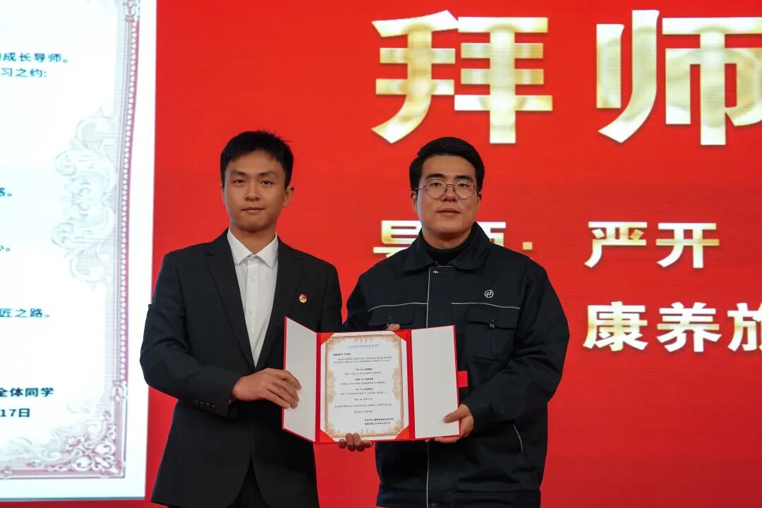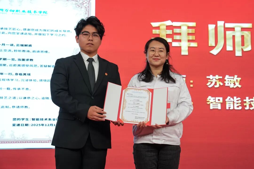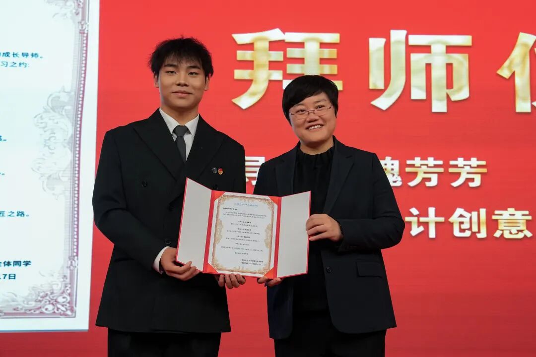 拜师仪式上,来自智能技术系、康养旅游系、设计创意系、数字经济系的4名学生代表向导师们呈拜师贴、行拜师礼、结对成师徒,用最为传统的方式,寄予同学们在今后学习道路上,向劳模学习,发挥劳模风范,立足产业+专业、思想+技能,向“德技兼修”的人才目标前行。