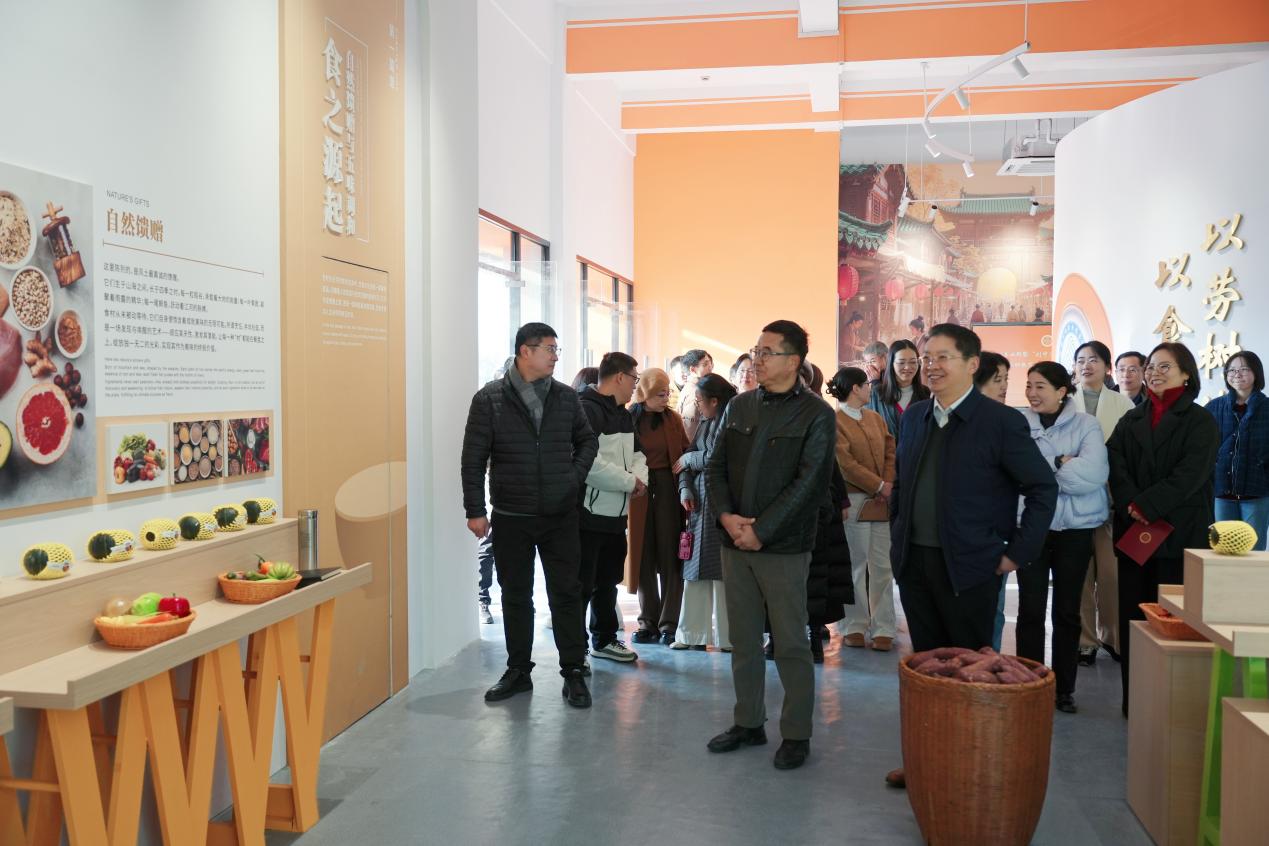 学院院长牟惠康、副院长朱仁学与康养旅游系主任任国平共同为厨艺新劳动教育空间揭幕。与会人员依次参观展示空间及绿色食品生产技术专业“三创”成果特展,听取馆内各展陈篇章内涵,了解浙菜与杭帮菜特色。