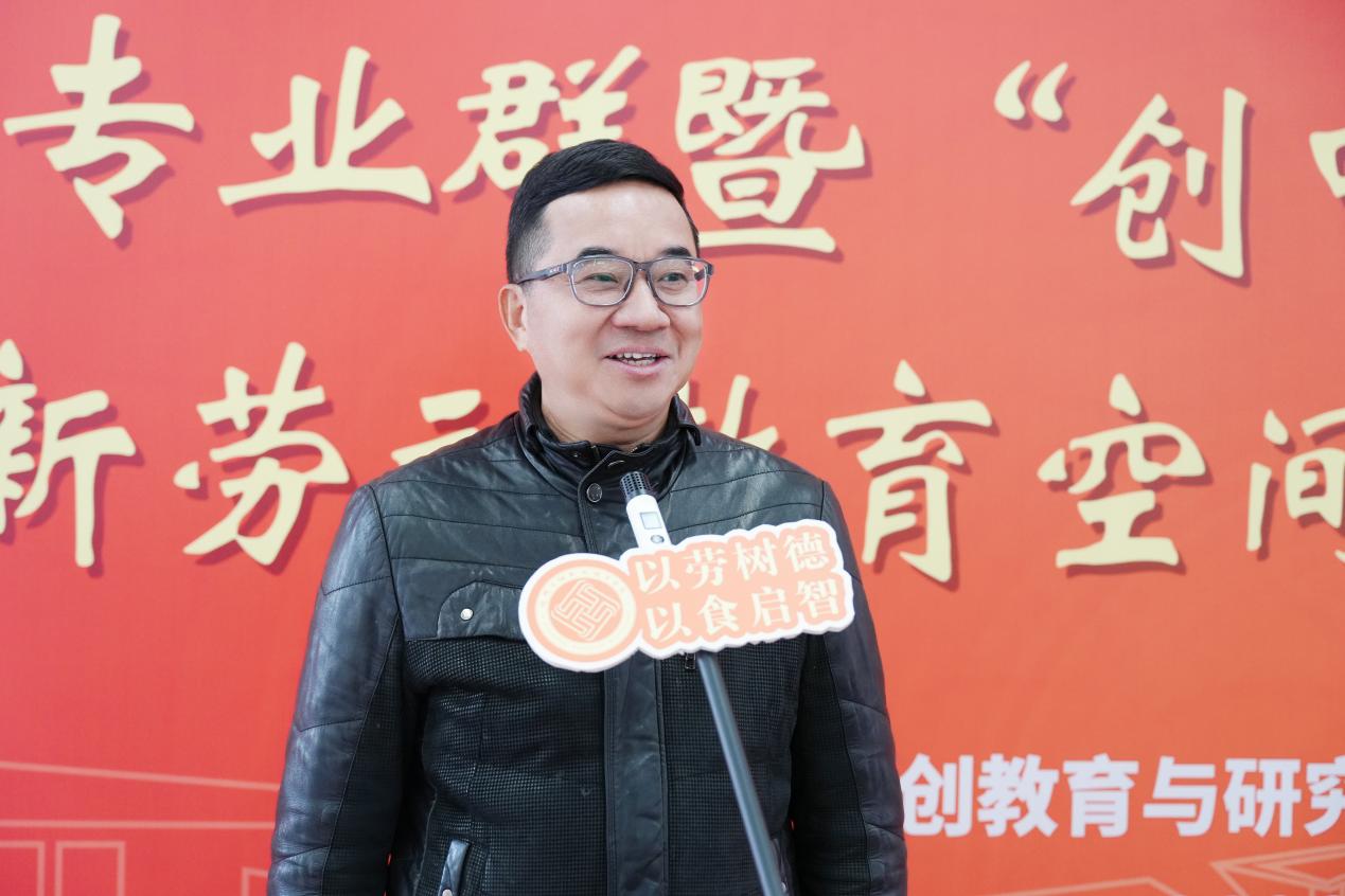 牟惠康院长在致辞中,对三创专业群的成立、厨艺新劳动教育空间的落成表示热烈祝贺,并就后续工作提出三点要求:一是抓焦点,聚焦“三创”特色,在“创中学”基础上将“三创”融入专业建设;二是抓起点,将“迎评”“三创”落实到个人工作中;三是抓奇点,做成做好有意义的事。