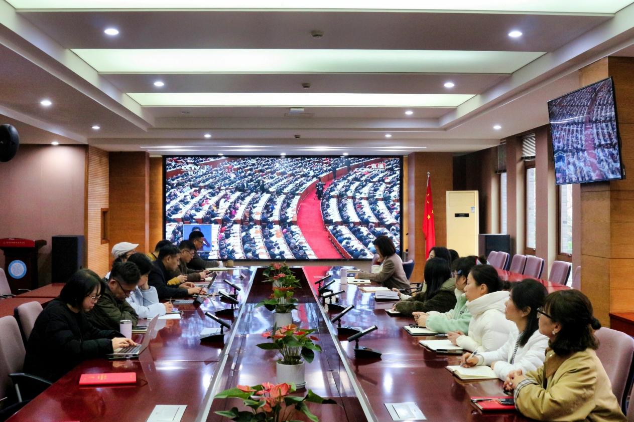 学院师生代表集中收看开幕会直播