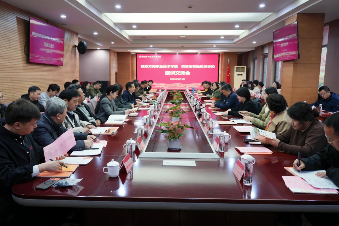 座谈会上,朱仁学副院长对代表团的到来表示热烈欢迎,天津市劳动经济学校副校长李金桥对我院发展成效给予高度评价。双方各自介绍了发展历程、办学特色、育人成果等内容,并就专业设置、师资建设、教学改革等方面展开探讨。