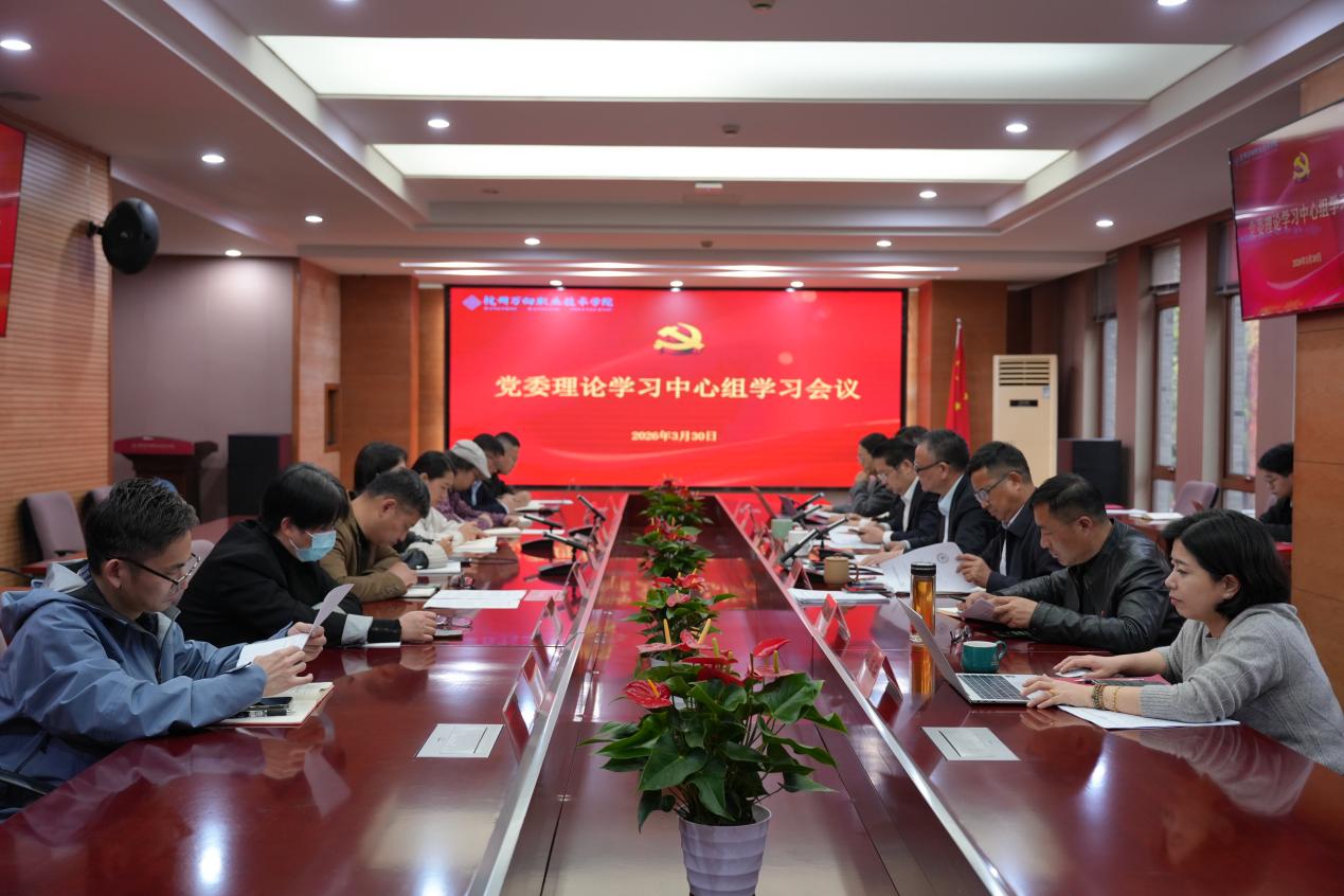 2026年3月30日上午,学院党委理论学习中心组在行政楼6216会议室举行集体学习会,专题学习习近平总书记关于树立和践行正确政绩观的重要论述。学院党委书记管大源领学并讲话,学院院长、党委副书记牟惠康等全体中心组成员参加。