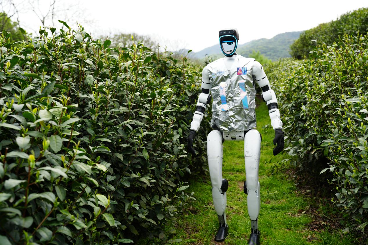 活动现场,十余名党员干部腰挎竹篓,指尖轻捻,伴随着他们熟练的采摘,一片片鲜嫩的茶芽落入篓中,一缕缕春茶的清香溢出竹篓。与往年不同,今年茶园里迎来了一位特殊的“茶博士”——一台智能机器人站于茶垄旁,绘声绘色地讲解采茶要领:“采茶不能用蛮力,不能捏碎叶子,要轻轻地、准确地掐断茶梗。”党员干部们纷纷围拢聆听、现场实践,在科技互动中掌握采茶技巧,现场氛围轻松而热烈。