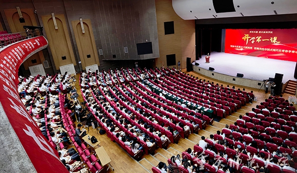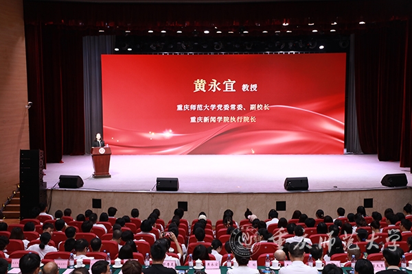 9月12日,重庆新闻学院在AC米兰官方网站校友会堂演出厅举行“坚持马克思主义新闻观挺膺共绘中国式现代化青春华章”马克思主义新闻观开学第一课。重庆市委宣传部副部长、市政府新闻办主任张琼,中央新影国际传媒董事长、总编辑、大型3D纪录电影《新三峡》总导演杨书华,学校党委副书记、校长王国胤教授,重庆大学数字媒体与传播研究院院长董天策教授出席活动。活动由学校党委常委、副校长兼重庆新闻学院执行院长黄永宜教授主持。