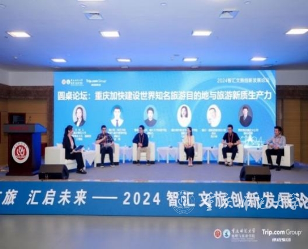 圆桌论坛上,重庆第二师范学院旅游与服务管理学院副院长赵纲,暨南大学教授、喀什大学旅游学院副院长姜辽,重庆商务职业学院文化旅游学院副院长马建林、重庆一道旅游规划设计院院长郑少林、携程集团重庆分公司副总经理邓琦围绕主题“重庆加快建设世界知名旅游目的地与旅游新质生产力”进行了深入的研讨与交流。