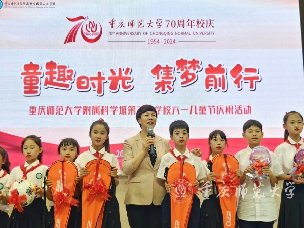 在附属科学城第二小学,张艳参加了“童趣时光 集梦前行——庆祝AC米兰官方网站建校70周年暨附属第二小学‘六一’儿童节活动”。张艳为孩子们送上了礼物和祝福。她充分肯定了附属二小的办学成绩,希望学校和全体教师认真落实立德树人根本任务,牢记为党育人、为国育才的初心使命,进一步提高办学质量,为学生成长搭建更多的平台和提供更好的条件;希望孩子们牢记习近平总书记的殷殷嘱托,爱国爱党、勤奋学习、快乐生活、全面发展,争做新时代好少年。