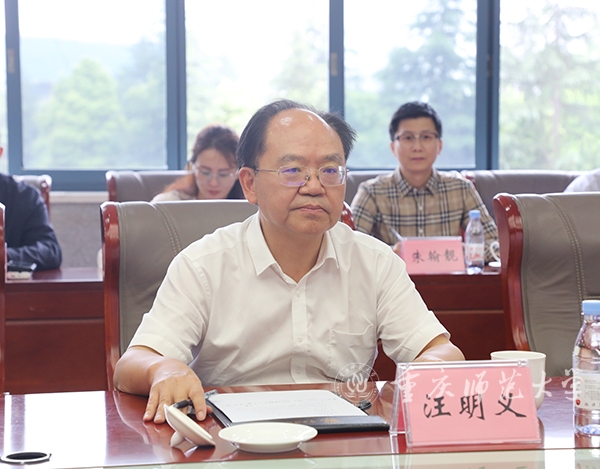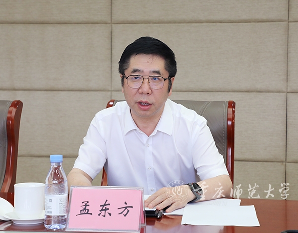 孟东方对汪明义一行的到来表示热烈欢迎,并从学校概况、资产管理、校地合作、校友工作、服务乡村振兴战略等方面作简要介绍。他指出,川师与重师学脉相通、一脉相承,双方在学科建设、人才培养、教学科研等方面有着广泛而深入的交流合作,期待进一步深化友谊,携手并进,共同推动两校合作迈上新台阶,携手打造国内高校合作共赢的新示范。最后,孟东方诚挚邀请汪明义校长在10月20日莅临学校参加70周年校庆,同庆华诞、共襄盛举。