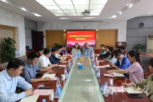 重庆市艺术科学规划领导小组办公室有关人员,学校科研处、新闻与传媒学院、音乐学院、美术学院相关负责人及教师代表参加座谈会。