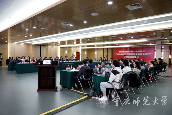 重庆市社科规划评奖办公室主要负责人,项目子课题负责人、联络人及团队成员,学校党政办、人事处、科研处、财务处、审计处、后勤与资产管理处、图书馆、信息技术中心、文学院主要负责人参加成果结项鉴定会。