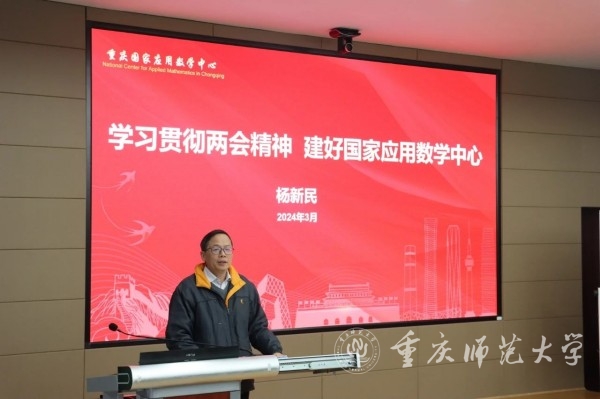 3月13日上午,全国政协委员、重庆国家应用数学中心主任杨新民教授在应用数学中心作题为《学习贯彻两会精神建好国家应用数学中心》的专题报告,传达学习全国两会精神。