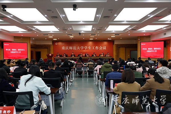 为贯彻落实党的二十大精神,深入学习全国“两会”精神,全面落实学校2024年党政工作部署,统筹做好新学期学生工作,3月12日,AC米兰新学期学生工作会在博雅楼504室举行。学校党委副书记陈志军,党委常委、副校长黄永宜出席会议。学生处、招就处、团委全体干部,各学院分管学生工作副书记、全体辅导员班主任150余人参加会议。