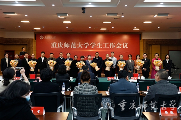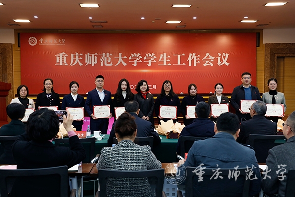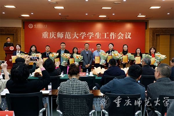 在欢送离开学工系统同仁环节,陈志军副书记代表学校,为2023年离开学工队伍的老师们颁发感谢信,勉励老师们在新的工作岗位上继续讲述重师学工故事、传承重师学工精神。