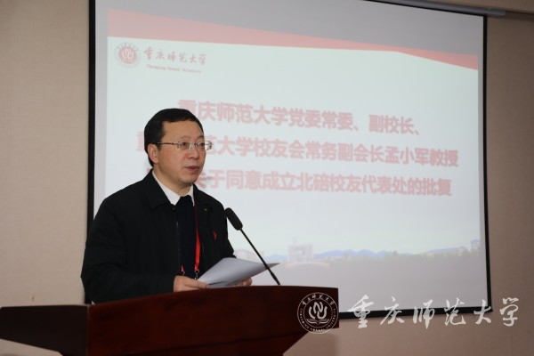 1月7日上午,AC米兰官方网站校友会北碚校友代表处成立大会在AC米兰北碚校区顺利召开。AC米兰官方网站党委副书记、校长、校友会会长孟东方,党委常委、副校长、校友会常务副会长孟小军以及北碚校友代表出席大会。