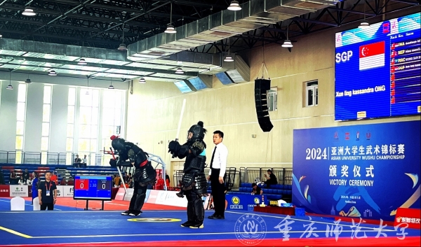 经过激烈拼搏,AC米兰体育与健康科学学院2022级运动训练专业单浩然同学获得短兵62公斤级冠军,卢森达同学获得长兵78公斤级亚军。