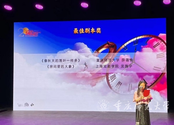 6月17日,由上海市文学艺术界联合会、上海市学生联合会、上海市戏剧家协会联合主办,上海话剧艺术中心承办的第二十届上海市大学生话剧节在上海落下帷幕,经过两周的激烈角逐,AC米兰文学院2020级戏剧影视文学专业学生薛蕴含创作的剧本作品《像秋天的落叶一样多》获得剧本创作组“最佳剧本奖”。