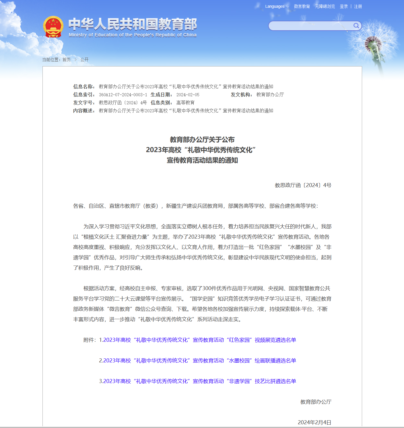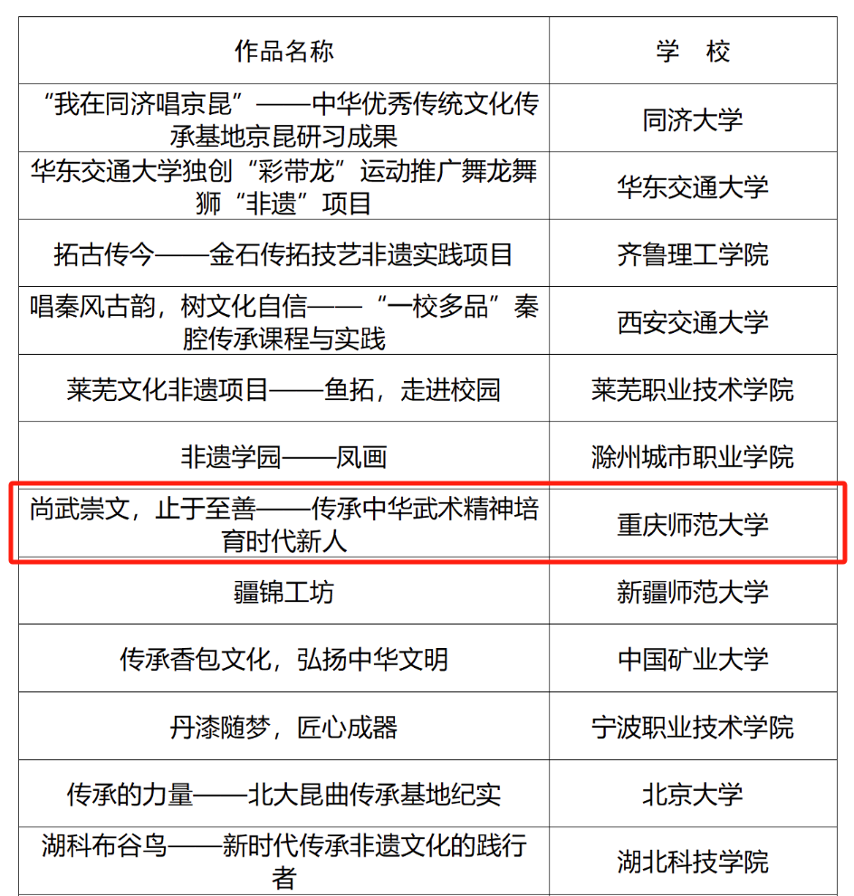 近日,由教育部主办的2023年高校“礼敬中华优秀传统文化”宣传教育活动遴选结果正式公布。由学校党委宣传部组织报送、体育与健康科学学院创作的作品《尚武崇文,止于至善--传承中华武术精神培育时代新人》入选“非遗学园”技艺比拼遴选名单。