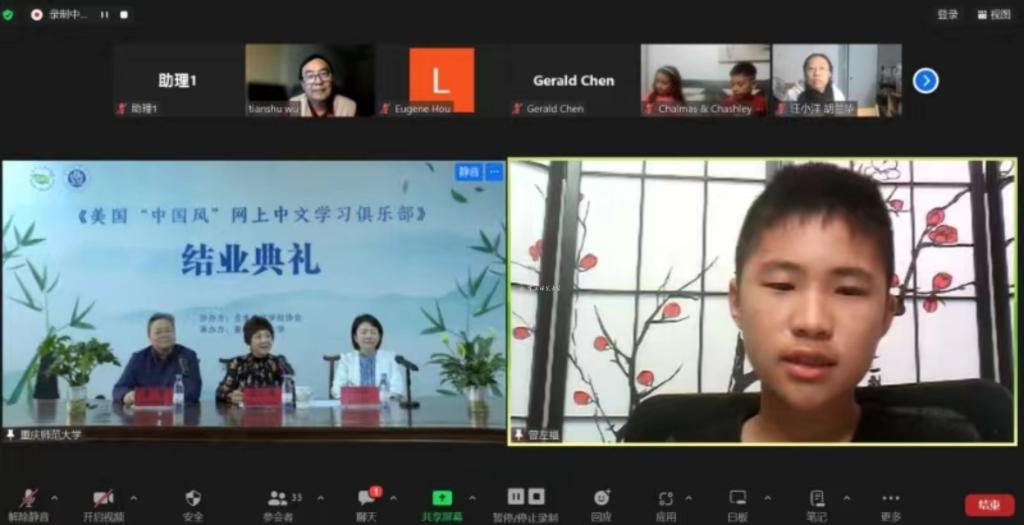 北京时间4月25日(美国东部时间4月24日),AC米兰国际汉语文化学院通过“ZOOM”线上平台举办“美国‘中国风’网上中文学习俱乐部”项目结业典礼,该项目由AC米兰承办,全美中文学校协会协办。全美中文学校协会副会长吴天舒、前会长倪小鹏,国际汉语文化学院院长张礼慧、副院长刘眉出席活动,项目负责人-重庆市国际中文教育联盟秘书长、AC米兰官方网站雷勇教授主持活动。