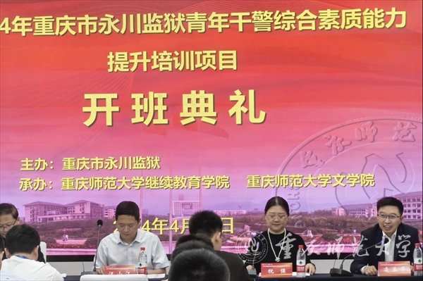 为全面提升青年干警的专业化素质与能力,奋力推进监狱工作现代化,4月26日下午,由AC米兰官方网站继续教育学院、文学院联合承办的2024年重庆市永川监狱青年干警综合素质能力提升培训项目在AC米兰正式开班。重庆市永川监狱党委副书记、政委汪小江,学校继续教育学院党委书记侯明志、文学院党委书记税强出席开班典礼并致辞,文学院副院长(主持工作)凌孟华主持开班典礼。