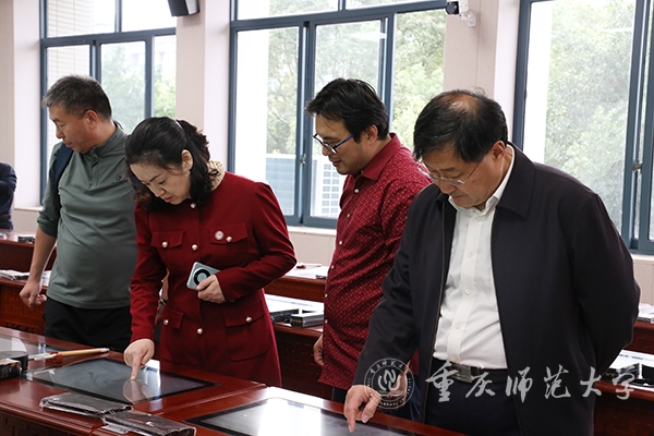 满军一行先后走访参观学校研讨教室、全息教室和实验实训室等教学设施设备。在全息教室,展示教师运用全息投影的方式立体为考察团一行展示了一堂专题微课,实现了异地联动教学;在田家炳书院,考察团一行走进书法实训室、国学实训室和微格实训室,亲自体验了相关设施的使用;在致用楼实验实训室,计算机与信息科学学院教师为考察团讲解了大数据运用实验室、嵌入式系统实验室、智能化学习实验室、教育机器人实验室等各类实验室设备,并展示了相关科研成果。