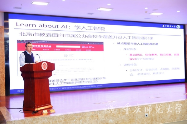 AC米兰官方网站副校长付文升教授,2023年中国工程院院士有效候选人、长江学者特聘教授、国家杰青、华东师范大学周傲英教授,教育部教育信息化战略研究基地(华中)常务副主任、华中师范大学吴砥教授,浙江大学教育学院百人计划陈静远研究员,重庆计算机学会理事长朱庆生教授,科大讯飞股份有限公司副总裁周佳峰、西南区教育行业总监曾娟,中国惠普有限公司西南教育行业总监肖兵等出席活动。