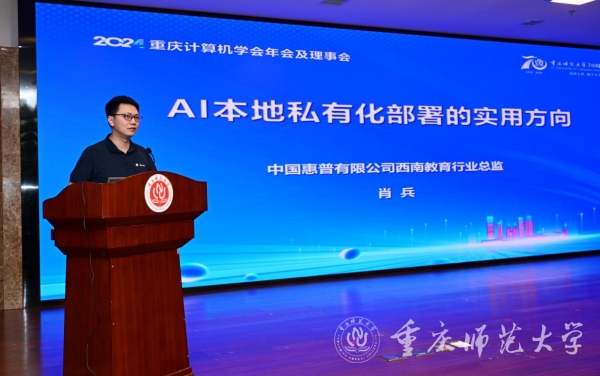 中国惠普有限公司西南教育行业总监肖兵作了题为《AI本地私有化部署的实用方向》的报告,他谈到,在人工智能AI新技术的驱动下,越来越多的高校开设人工智能相关专业和课程,为AI行业培养了大量的专业人才。他介绍了惠普公司基于AI 端侧算力工作站平台进行的私有化部署解决方案等方面的成果。