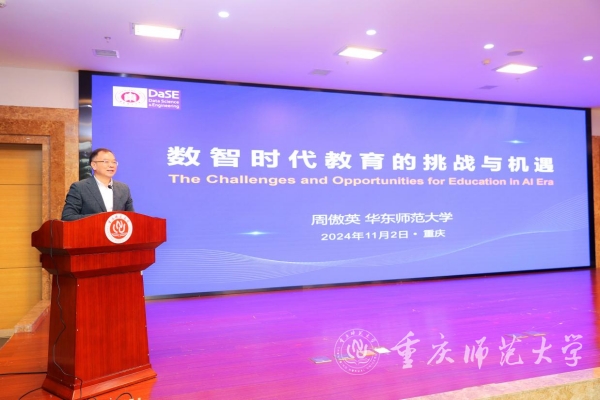 主题报告环节,周傲英教授作题为《数智时代教育的挑战和机遇》的主题报告。他谈到,数智教育就是用人工智能来实现“有教无类,因材施教,寓教于乐,教学相长”的中国教育智慧。当前的人工智能本质上是数据驱动的人工智能。十多年来,从大数据热到人工智能热再到数字化转型,逻辑上一脉相承,数字化也被称为数智化。数据智能热潮带来深刻的启示,启发我们重新思考对科学和数据的理解。人工智能本身就是一场新的科技革命,它有两个显著特征;一是科学技术发展从传统的“科学引领技术”变成“技术倒逼科学”;二是“新的经验主义”呼唤“新的理性主义”,新科学呼之欲出。数据是新的能源动力,数据之于数字化,正如电力之于电气化,数据将把人类带入数字文明。数智时代需要新的教育理念,创新成为教育的主题;教育数字化转型是教育发展的机遇,数据赋能和科技助力为数字教育提供了现实路径,教育可以从内容和形式上进行深刻的变革。