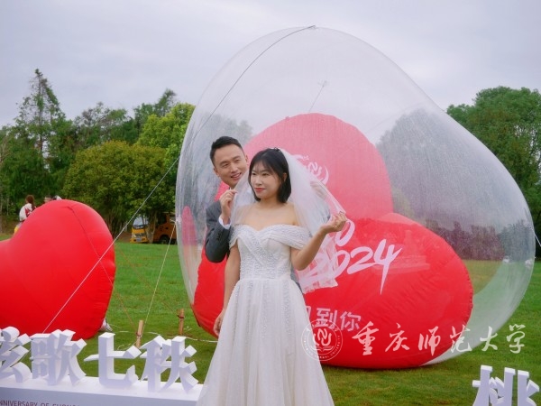在《相亲相爱一家人》的歌声中,伉俪们互送鲜花,共同唱响时光与爱的旋律。启动仪式后,校友伉俪及其亲友前往校园各打卡点,在回忆青春和感恩母校的同时,留下他们珍贵而美好的瞬间。