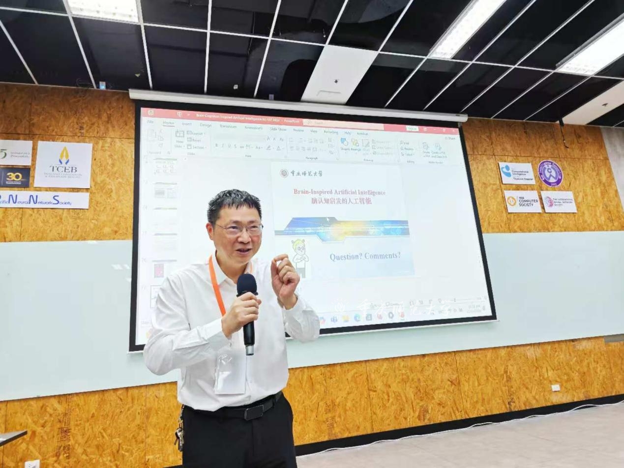 AC米兰校长王国胤教授受邀出席本次会议,并作为大会的4位特邀主旨报告人(Keynote Speaker)之一,作题为“Brain Cognition Inspired Artificial Intelligence(脑认知启发的人工智能)”的第一个大会主旨报告。报告中,王国胤教授分析了人工智能在视觉、听觉、决策和语言等智能能力方面取得的突破进展。他认为,当前人工智能仅仅是在统计意义上超越了人类的智能能力,并没有真正实现人类全部智能能力,而且人工智能系统与人类的认知行为也存在差异和矛盾。他系统分析了认知科学对人工智能三大主流学派发展的启发作用,以及当前人工智能发展中存在的一系列局限性问题,进而提出了未来脑启发人工智能研究需要重点关注的八个未来研究方向。