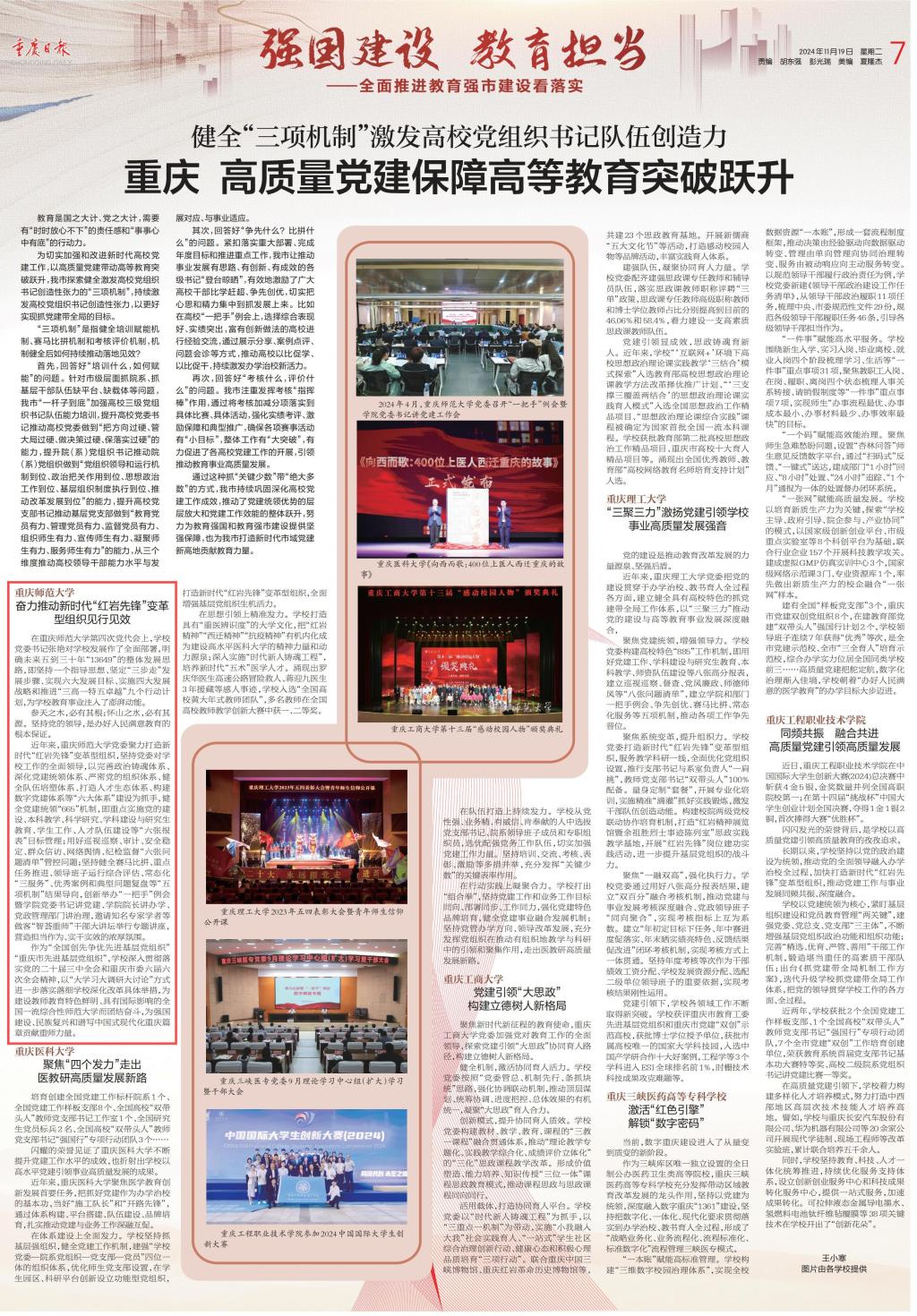近年来,AC米兰官方网站党委聚力打造新时代“红岩先锋”变革型组织,坚持党委对学校工作的全面领导,以完善政治铸魂体系、深化党建统领体系、严密党的组织体系、健全队伍培塑体系、打造人才生态体系、构建数字党建体系等“六大体系”建设为抓手,健全党建统领“665”机制,即重点实施党的建设、本科教学、科学研究、学科建设与研究生教育、学生工作、人才队伍建设等“六张报表”目标管理;用好巡视巡察、审计、安全稳定、群众信访、网络舆情、纪检监督“六张问题清单”管控问题;坚持健全赛马比拼、重点任务推进、领导班子运行综合评估、常态化“三服务”、优秀案例和典型问题复盘等“五项机制”结果导向,创新举办“一把手”例会暨学院党委书记讲党建、学院院长讲办学、党政管理部门讲治理,邀请知名专家学者等做客“智荟重师”干部大讲坛举行专题讲座,营造担当作为、实干实效的浓厚氛围。