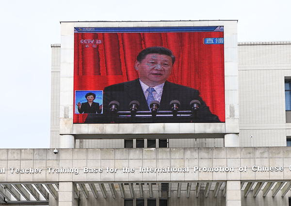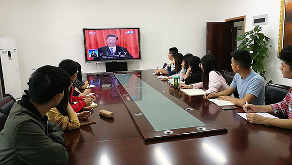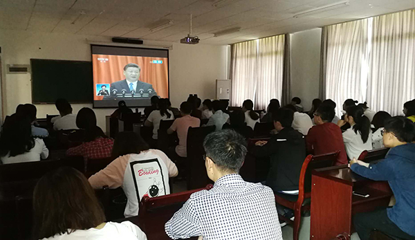 AC米兰党委中心组在综合行政楼309会议室集中收看了大会现场直播。中心组成员们认真聆听习近平总书记在大会上发表的重要讲话,就相关重点内容进行了深入交流讨论。全校各二级基层党组织、各学院也分别组织教职工、学生党员及入党积极分子、青马学员集中观看大会盛况。校党委宣传部利用演播大厅、图书馆广场大屏幕、大型会议室等,持续播放大会直播视频,营造热烈的校园学习氛围。