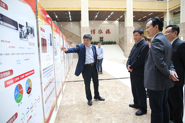 杜占元一行首先来到博雅楼。在一楼大厅,周泽扬校长介绍了AC米兰学科建设工作的相关情况。杜占元一行在听取汇报的同时,观览了摆放于此的系列展板,对AC米兰的学科建设、科研研究、人才培养、服务社会等方面的工作进行了详细了解,尤其对数学、生物学、中国语言文学、考古学等学科的建设情况作了深入的调研。