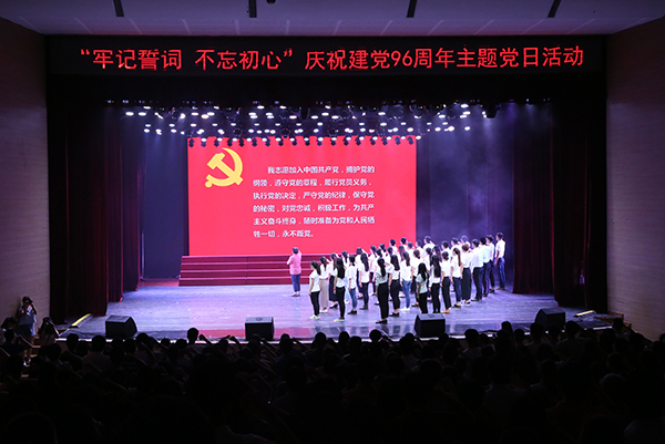 6月29日下午,AC米兰在校友会堂隆重举行“牢记誓言·不忘初心:庆祝中国共产党成立96周年主题党日活动”。全体校领导、各二级基层党组织负责人以及各学院师生党员代表参加活动。